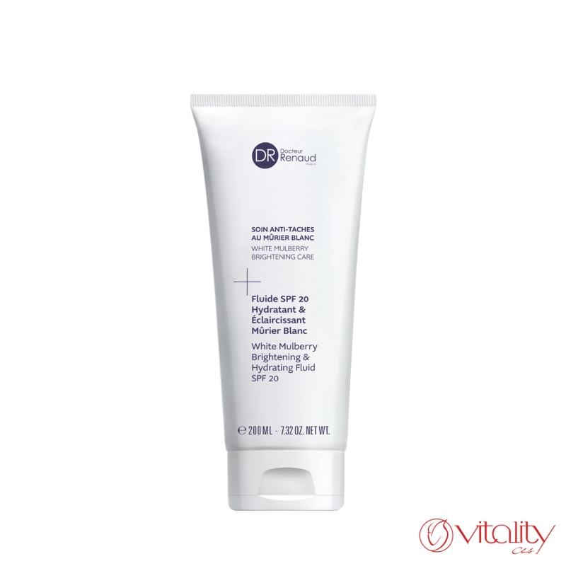 Кремообразен флуид, който изсветлява и уеднаквява тена, спомага за видимото намаляване на пигментните петна, хидратира и осигурява защита на кожата. Ден след ден петната избледняват и тенът става свеж и светъл. Фитодепигментиращ комплекс (саксифрага, грозде, скутелария и черница) и екстракти от органична бяла черница и пясъчна лилия ограничават действието на ензима тирозиназа, който участва в синтеза на меланин, намаляват производството на меланин, водят до намаляване на размера и избледняване на пигментните петна. Хиалуронова киселина и растителен глицерин хидратират, изпълват и изглаждат кожата. POLLUSTOP® действа като молекулярна бариера, която предпазва кожата от фини прахови частици, тежки метали и въглеродни частици. Комбинация от UVA и UVB филтри я защитават от стареене и слънчево изгаряне със сила SPF20.