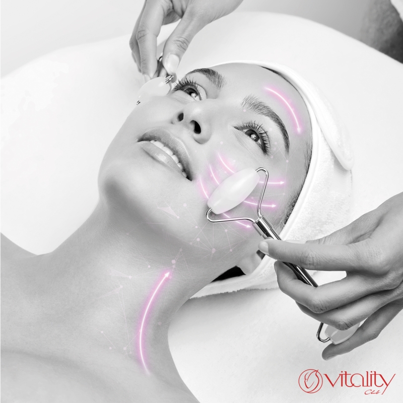 Продължава се с масаж с Е2104 Дрениращ ролер. Започва се от шията и с бавни движения се стига до челото (виж приложената схема).